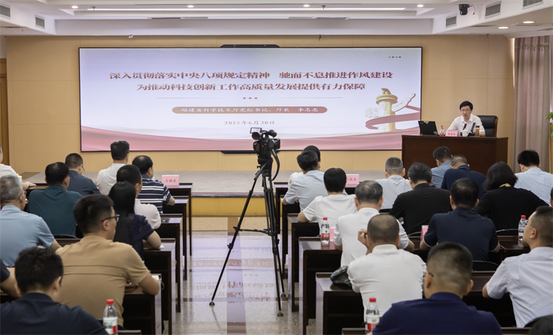 6月30日,省科技厅举办深入贯彻中央八项规定精神学习教育专题党课报告会,厅党组书记、厅长李志忠同志以“深入贯彻落实中央八项规定精神驰而不息推进作风建设为推动科技创新工作高质量发展提供有力保障”为主题,为厅系统党员干部讲授学习教育专题党课。在家厅领导,驻厅纪检监察组、厅机关全体党员、干部,在榕各直属单位党政主要负责人参加会议。