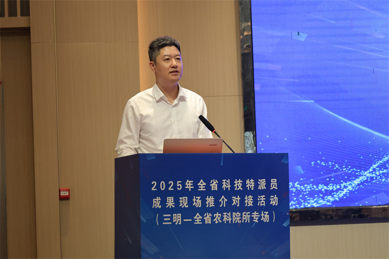 11月6日,由福建省科学技术厅主办的全省科技特派员成果现场推介对接活动(三明–全省农科院所专场)在三明市沙县区举行。活动旨在展示全省农科院所科技特派员的科技成果,推动农科院所科技特派员与需求企业的有效互动和精准对接,促进科技特派员服务建立在产业链上,助力乡村振兴。省科技厅党组成员、副厅长陈虔,三明市政府党组成员、副市长钟科出席活动并致辞。福建农林大学校长兰思仁教授作“深耕科技特派员制度 践行强农兴农使命”的主旨讲座,省、市科技特派员联席会议成员单位,全省农业科研院所系统科技特派员及其所在单位代表,设区市科技局代表,相关企业、科技服务机构、金融机构代表等180余人参加了活动。