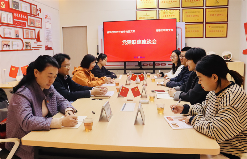 支部党员干部深入瑞谦智能科技公司一线,详细了解该公司在人工智能、视觉应用及智慧园区等领域的技术创新与产业发展情况。座谈会上,双方共同学习了党的二十届四中全会精神、习近平总书记关于科技创新与产业创新深度融合的重要论述,并结合学习科技部阴和俊部长在《人民日报》上发表的署名文章《推动科技创新和产业创新深度融合》,围绕如何促进党建业务深度融合,强化企业创新主体作用,扩大对外科技创新合作进行了深入研讨。对外合作处听取了企业在开展对外科技合作方面的问题与建议,并提供相关政策指导。