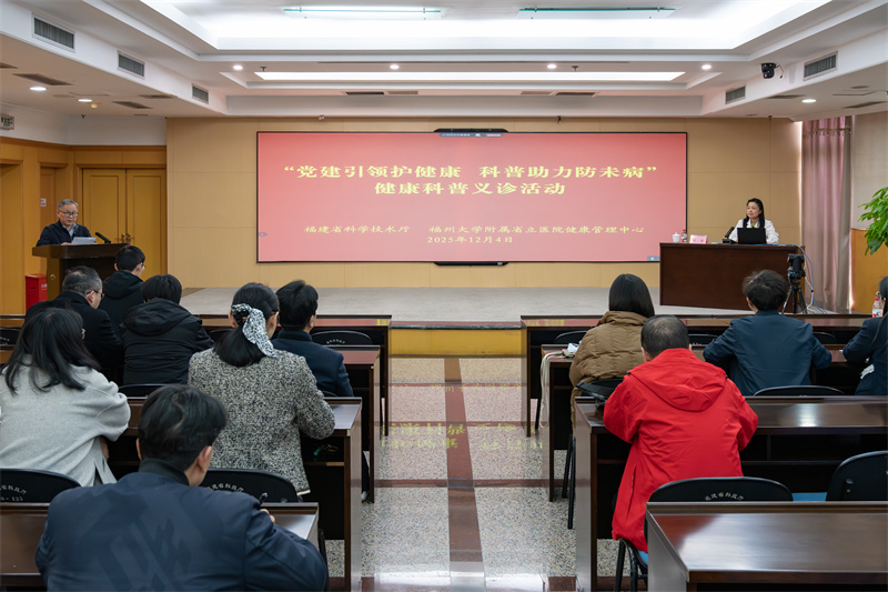 为深入学习领会习近平总书记关于健康中国建设的重要论述,进一步提高厅系统干部职工的健康管理素养和能力。近日,省科技厅与省立医院联合举办“党建引领健康科普助力防未病”主题健康知识科普讲座和现场健康检测活动。 讲座中,省立医院李力主任医师结合机关干部健康诊断典型案例,以生动形象的方式科普成人个性化健康管理相关知识,重点讲解健康风险评估与生活方式协同干预的核心要点,针对健康风险因素筛查、疾病线索早期识别等关键环节,为机关干部开展疾病预防、早期诊治及预后康复提供了科学可行的干预方案。 活动现场提供血压、血糖、骨密度、人体成分、人工智能视网膜眼底照相等检测,专家团队为厅系统干部职工提供健康咨询、个性化健康指导和答疑解惑。 大家一致表示,现场活动内容丰富、贴近生活;专家团队权威细心、针对性强,今后要更加重视培育健康文明的生活方式,做到合理膳食、科学运动心理平衡,为更好地生活和工作打下坚实基础。 驻厅纪检监察组、厅机关和在榕各直属单位200余人参加活动。