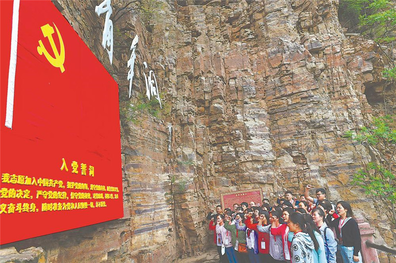 红旗渠边重温入党誓词。