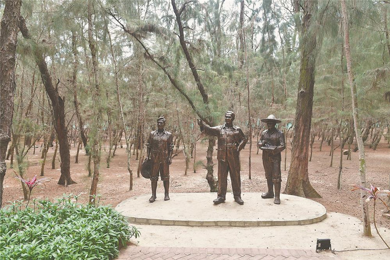 东山人民把谷文昌的塑像立在了防护林里。