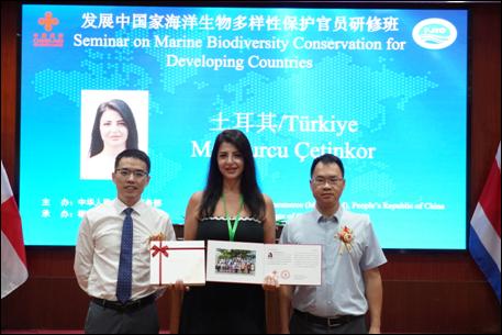 图1. 发展中国家海洋生物多样性保护官员研修班为土耳其学员颁发证书和纪念品