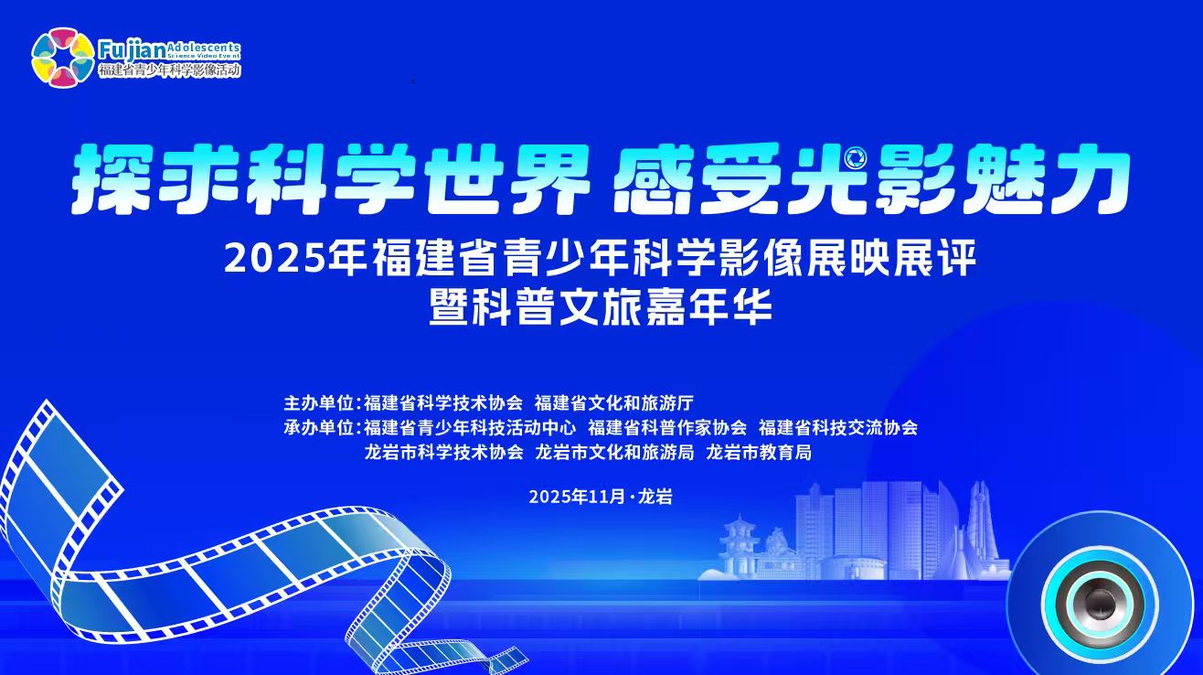 11月21日至23日,2025年福建省青少年科学影像展映展评暨科普文旅嘉年华活动在龙岩顺利举办,本次活动由福建省科学技术协会、福建省文化和旅游厅联合主办,福建省青少年科技活动中心、福建省科技交流协会、福建省科普作家协会、龙岩市科学技术协会、龙岩市文化和旅游局和龙岩市教育局共同承办的。